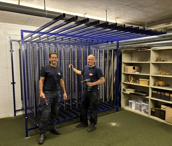 Schilderijrekken geschonken door NIJHA ‘Boymans van Beuningen is er niets bij’, wijze woorden van een lid van onze fotogroep. We zijn ontzettend blij met de schilderijrekken die de NIJHA speciaal voor ons heeft ingemeten, ontworpen, gemaakt en geplaatst. Zo kunnen we onze collectie schilderijen op een verantwoorde en handige manier netjes opslaan in ons depot in de kelder van de bibliotheek. Over de NIJHA hebben wij een artikel opgenomen op onze erfgoedsite www.erfgoedlochem.nl. Klik op deze hyperlink om het artikel te lezen.