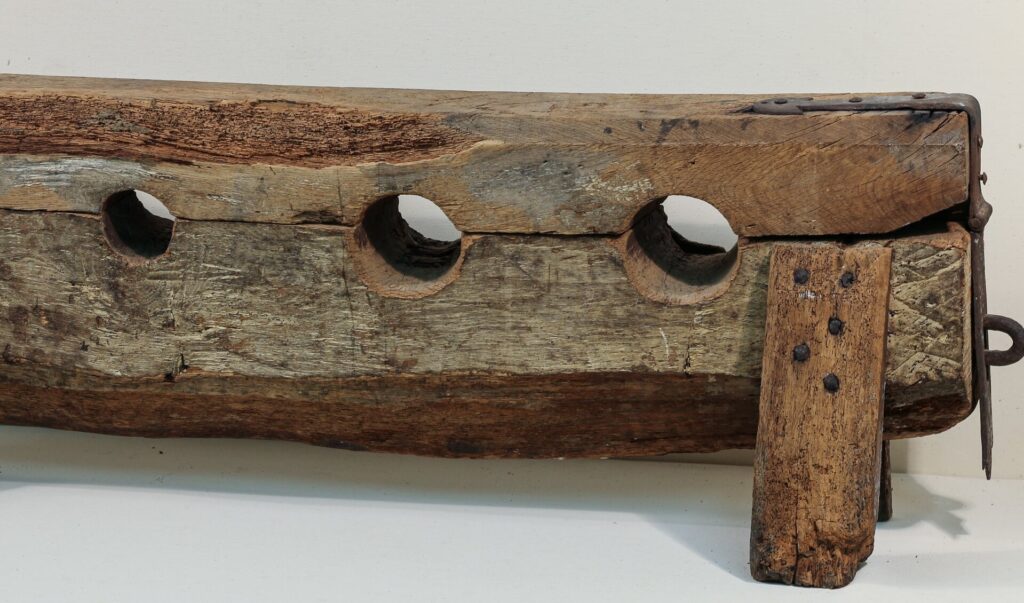 Het voetblok uit de Blauwe Toren is een van de topstukken uit onze collectie voorwerpen. Samen met bijvoorbeeld een oud vaandel van muziekvereniging Aeolus, een aantal hoofddeksels van brandweer en politie, aardewerk ter herdenking van 700 jaar stadsrecht, opgegraven werktuigen en nog veel meer zou dat wellicht de inhoud van een historisch museum hebben kunnen vormen. Omdat inmiddels zo’n museum niet haalbaar is gebleken tonen wij onze voorwerpen op de website erfgoedlochem.nl.